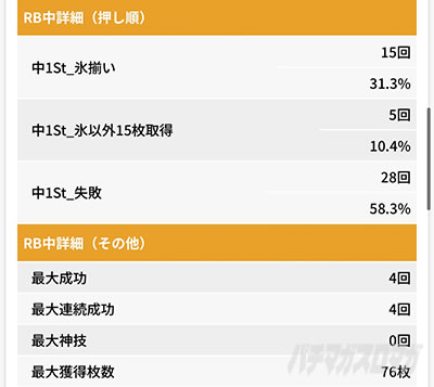 なんと、氷揃いの確率が昨日よりさらに上がっている!? しかもこれだけ回数をこなしての31%だよ。そして、最大連続成功が4回にまで成長。折り返し地点へ。努力が着実に実ってきているような実感があった。