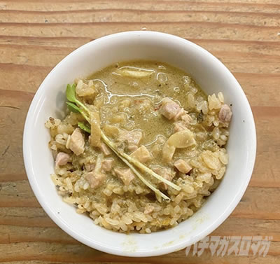 〆は残ったスープに「貝めし」をINして“貝茶漬け”に。
