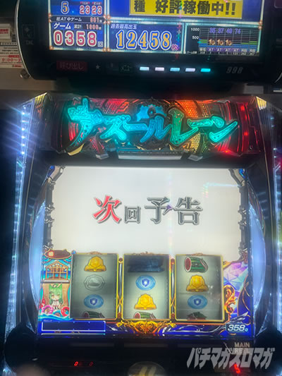 | 次回予告(連続演出発展Ver.)発生でAT直撃orAT確定のボーナス濃厚 |