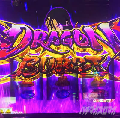 ベル連をガンガン決めて、順調に出玉を伸ばしていくと、BONUS中にATのゲーム数とベルナビをストックする特化ゾーン「ドラゴンバースト」に突入!