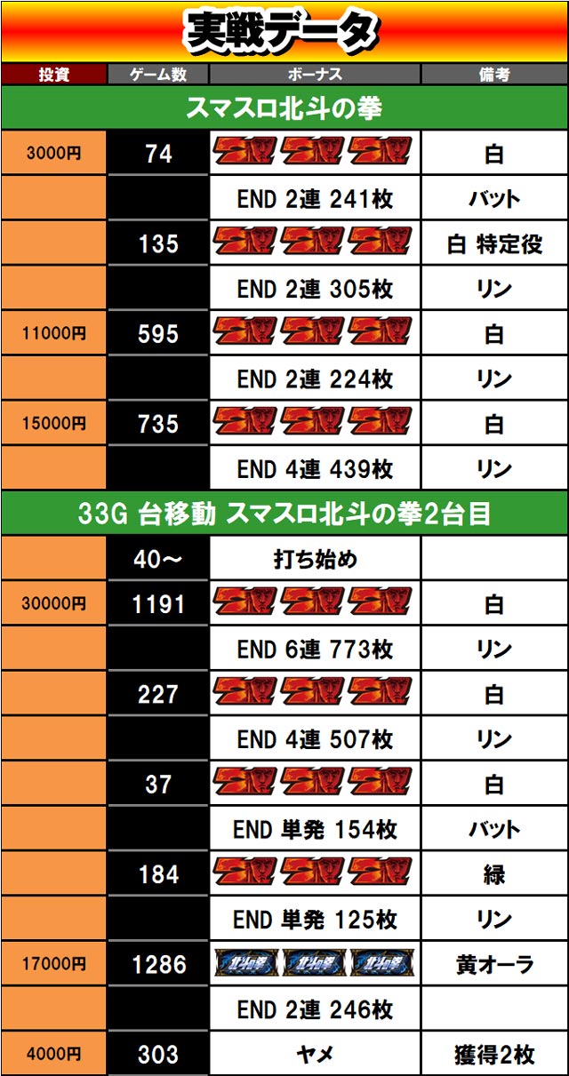 気を取り直して化物語へのリベンジをしたかったが、なぜか北斗を打っていた。そして何も無い…いや、天井到達後のボーナス告知ゲームで特定役を引くという変なヒキを発動したものの、北斗揃いで2連。
