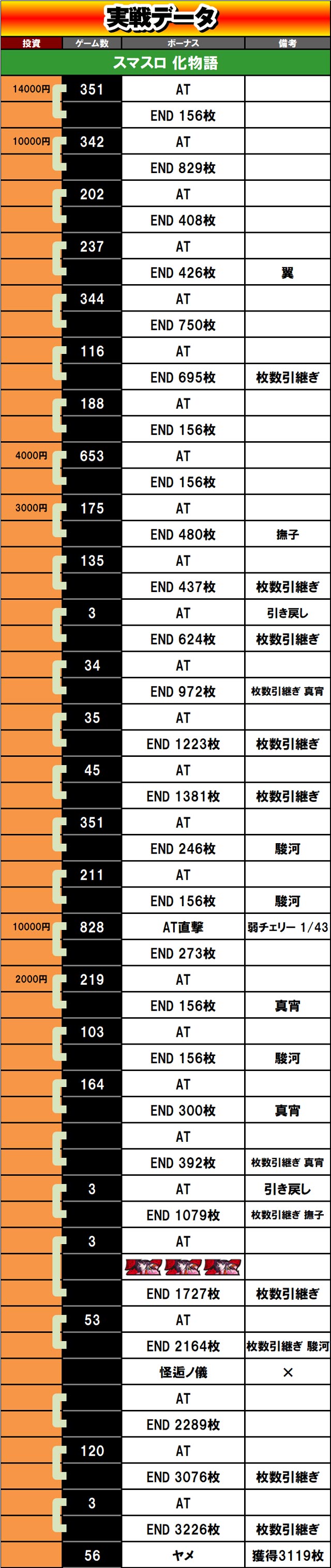 盛り上がる店内でなんとか化物語に滑り込むもヤレない展開が続いて46k投資。化物語3連敗がチラついたが、解呪連ロングっぽい挙動に2回ほど助けられて時間いっぱい1000枚のプラスでフィニッシュ!