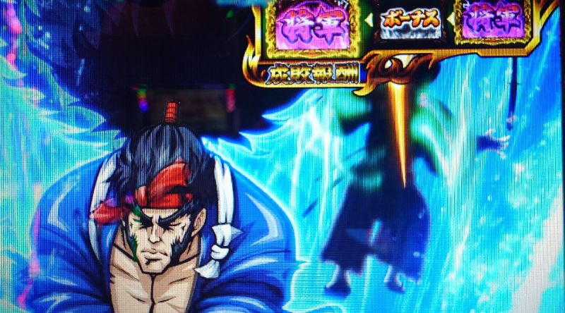 大量上乗せからの倍斬刀、五輪玉を複数貯めた時の無双状態(粛、煉?、疾のトリプルが最強)など、数多の出玉のトリガーがあるわけだが、やはりメインとなるのは愛の教育的武士道からの絶頂決戦である。