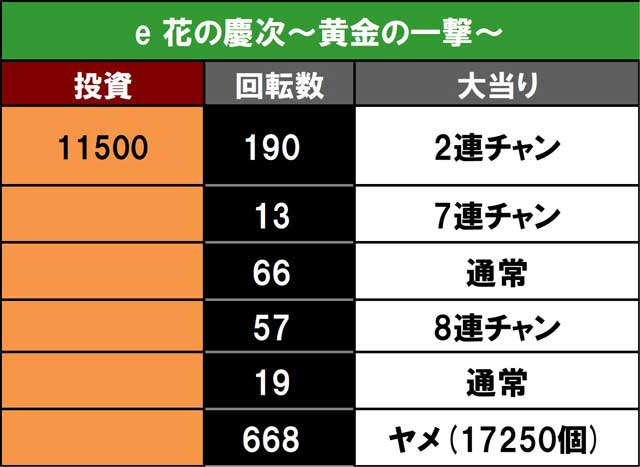 あとは出すだけなのだが、そのハードルがなかなか厳しいのはいつもの事。1万円以内で持ち玉ができるもそのあとが続かない。確率オーバーでの単発を2度繰り返し、総投資は4万円越え。そこから8連したが僅かにマイナス域。既に終了時間は過ぎていたが、今日は粘ってプラスにしたい欲が強く、続行を決意。ここでスターなら逆転勝利となる流れだったがそこは根っからの凡人。確率以上にハマってしまい単発終了。