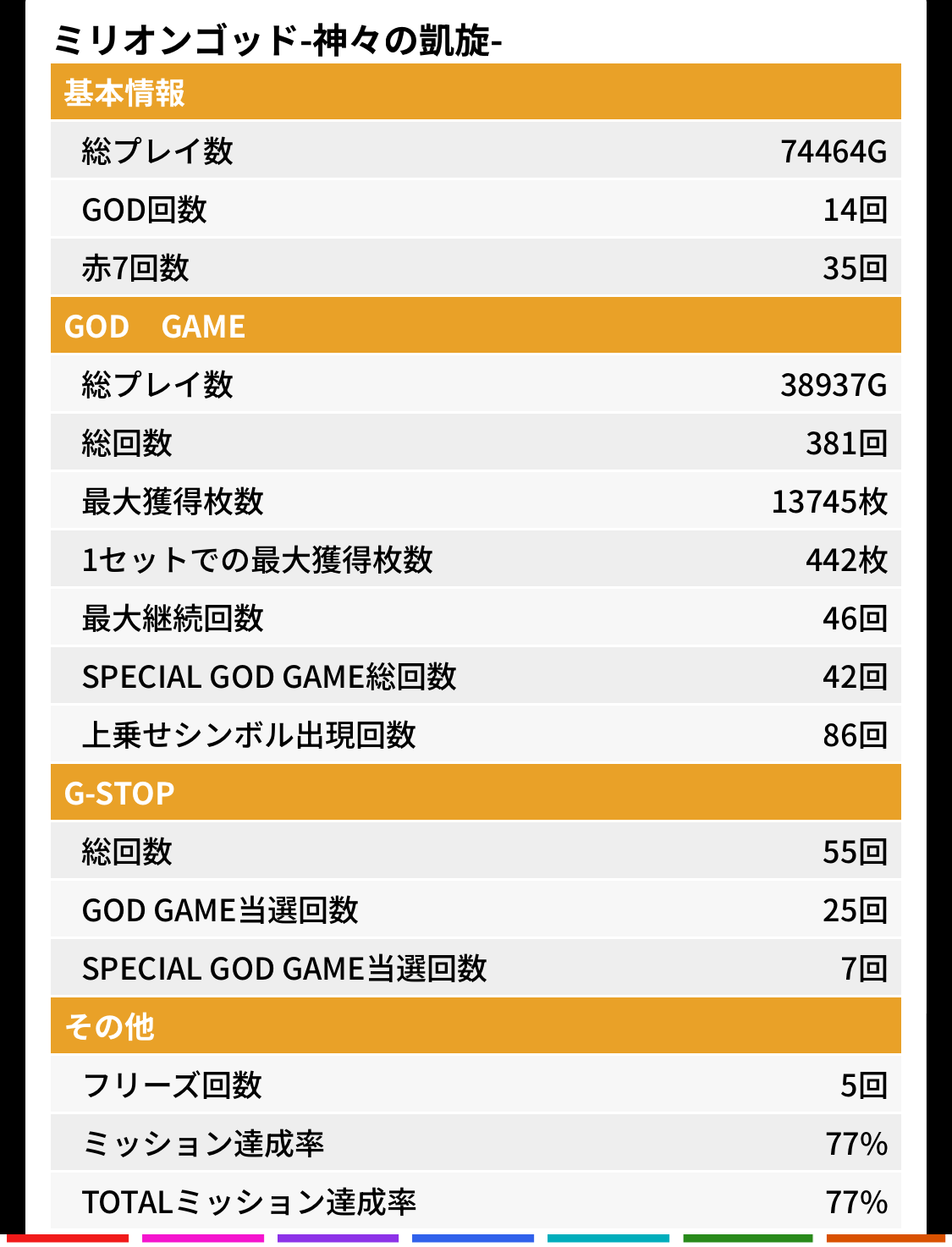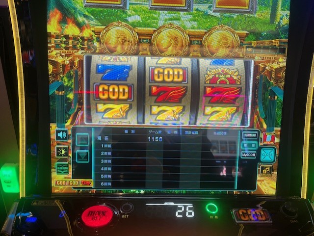 マジで全然打ってない(笑)。これでも初代ミリオンゴッド以外のシリーズすべての機種で、GOD揃いを経験しております。