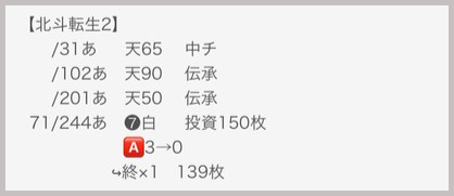 初当たりは早く、250あべしゾーンでのヒット。早々天破が絡んでくれたお陰で投資は貯メダル150枚。…しかし単発。