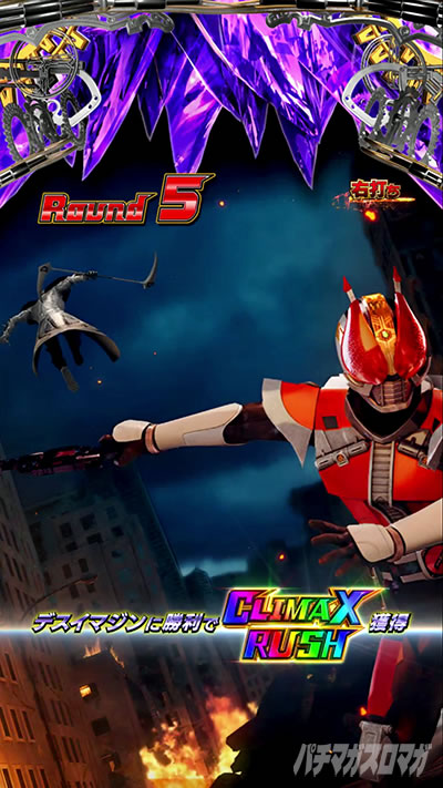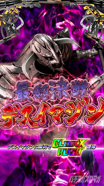 電王RUSH中の大当りで発生する可能性がある演出。デスイマジンに勝利でLT突入だ! 勝率は約40%。