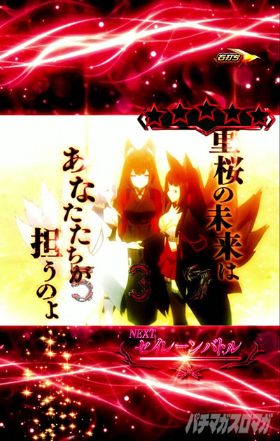 決戦BBの流れはとして、「大当り開始前の変動」→「ラウンド中に参戦陣営集結」→「ラウンド終盤に最終ジャッジ」という構成になっており、ラウンド中は画面上部の星の数で期待度を示唆している。