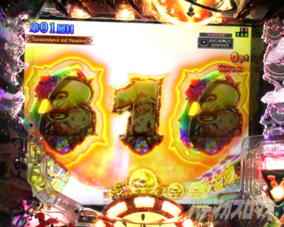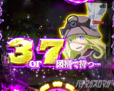 ライザが画面を切り裂き、3or7図柄を揃えるLT突入濃厚演出!