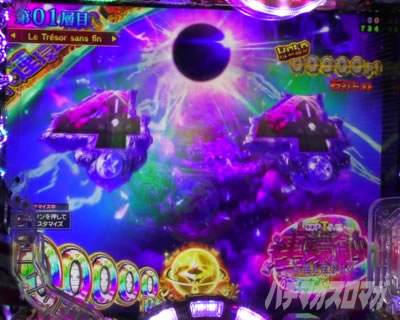 LTの「連環蝕」中は即当りで大当りに当選するモードとなっており、4図柄が揃わない限り継続する出玉上乗せ特化ゾーンとなっている!