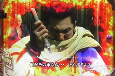 殺陣乱舞煽り発生からテンパイ成功で発展するリーチ。市が数多の敵をなぎ倒した後に平田との決戦に挑む。なぎ倒した数が多ければ多いほどチャンス!!