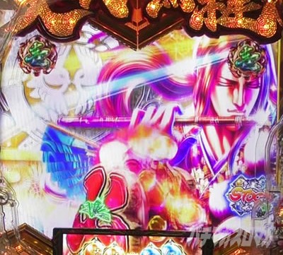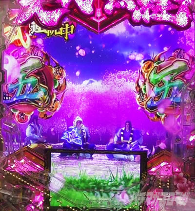 風流リーチはノーマルリーチハズレから発展。鉄扇キセル図柄が止まる事を祈ろう! 背景に兼続と慶次が居たら成功濃厚だ!