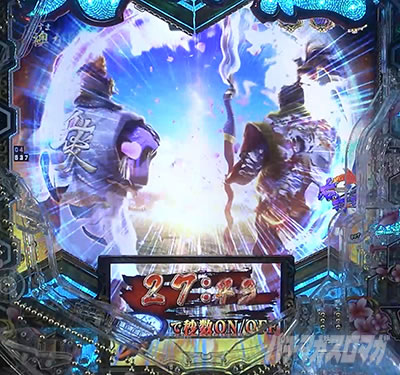 期待度が低い朱槍でもチャンスアップが一つ絡めば、激アツとなり大当りに期待できる。素手の場合だと大当り濃厚!