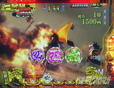 敵兵を殲滅すれば大当りとなるリーチ。残り1000体スタートがデフォルトだが500体からなら90%以上が大当りに結び付く強力チャンスアップとなる。