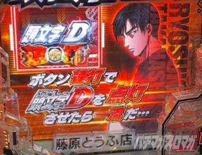 ドラテクランブル予告やリーチハズレ後などから発展する可能性がある。ボタン連打で頭文字Dロゴが全点灯すれば大当り!?