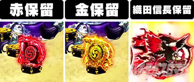 保留に「うつけ」の文字出現でチャンス。色や形状で信頼度が変化する。