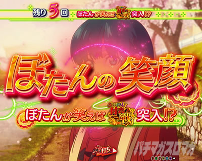 ぼたんが笑えばLTとなるチャレンジ演出。