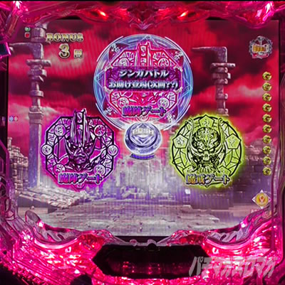 牙狼といえばの王道バトルモード。3つのゲートから好きなゲートを選んでバトル開始だ。おなじみのチャンスアップパターンに7500濃厚演出も追加されているぞ。