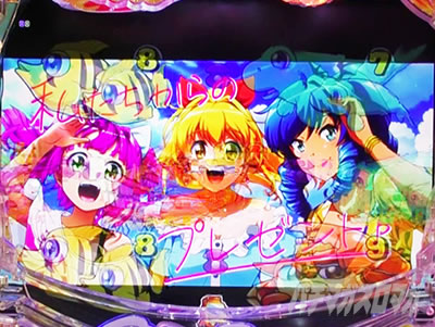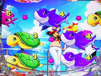沖縄モードで活躍するミニキャラ達が、SPリーチへ誘う予告。