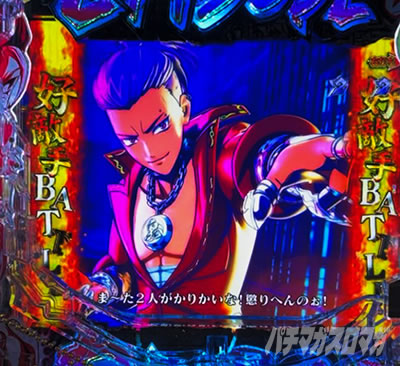 赤セリフでのやり取りや必殺技選択時は大チャンス! 下パネルの消灯演出や楽曲変化も存在する! 極悪非道が発生したときには大当り濃厚だ!
