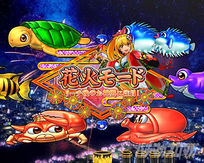 リーチ中のボタン演出で花火or魚群が出現。