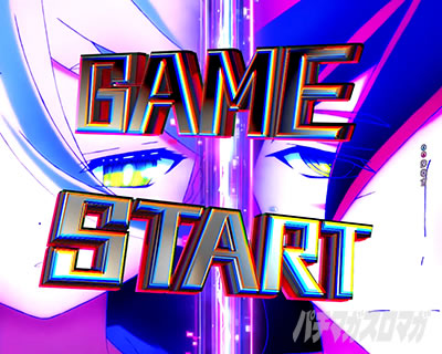 盤面上部のタイトルロゴが発光する演出。赤エフェクト以上に期待。