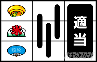 以下の停止形に合わせ、中・右リールを打ち分ける。右リールの暖簾は氷の代用絵柄なので、取りこぼしが発生するポイントは中リールの氷のみ。