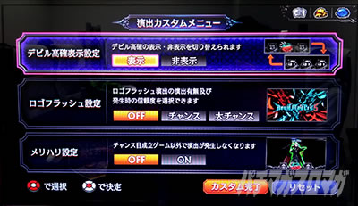 ST中は演出の出現頻度などをカスタムすることができる。設定推測を行う場合は「デビル高確」を非表示にしないよう注意!