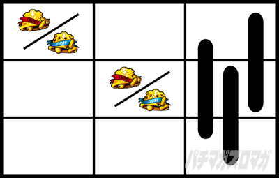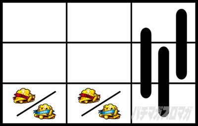 ![]() | ハズレ目中段ベル右チャンス目 | 中 | 低 |