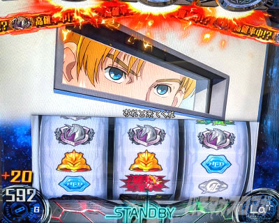 | スタンバイ状態はリプレイ揃いの次レバーで擬似遊技が発生し破壊役or覚醒役orユニコーン役が出現 |