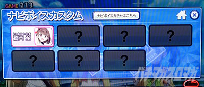 本機のナビボイスはカスタムが可能。7キャラ分のカスタムを搭載しているのでガチャにて開放させよう!