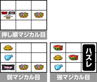 | 弱レア小役 | 弱チェリー スイカ 押し順マジカル目 弱マジカル目 |