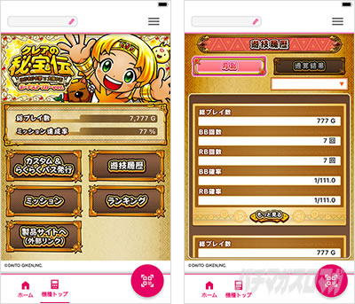 本機には「ダイトモ」機能が搭載されている。攻略に繋がる遊技履歴の確認はもちろん、遊び尽くす上で欠かせないミッションが多数用意されているぞ!
