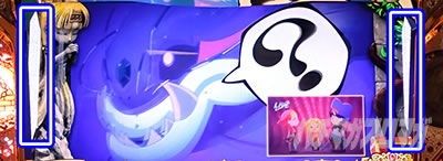 連続演出中にPUSHを押すと液晶の両サイドにあるランプが発光。色は成立役、パターンで矛盾(ボーナス)期待度の示唆が行われている。