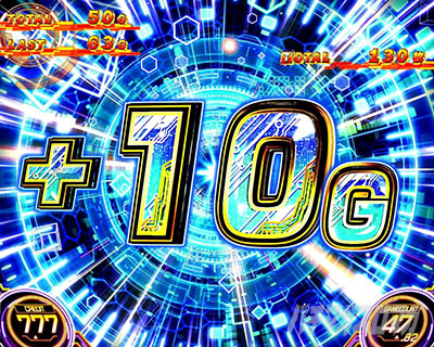 AT中のレア小役成立時はゲーム数上乗せを抽選。超電磁砲コイン入賞時は必ず10G以上が上乗せされる。