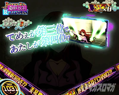 | キャラ選択時にリール前にイルミ発生…vs上条への昇格が濃厚! |