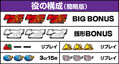 ◆初当り時は基本的に「銭形ボーナス(白7揃い)」に当選。ボーナス消化後はボーナス高確率ゾーン「デカタイム」へ移行し、10G+α継続する間に再度ボーナス当選を目指す!