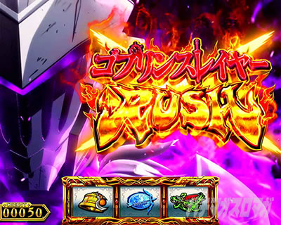 ゴブリンスレイヤーRUSHは1セット100GのAT。消化中はスレイポイントを貯めて恩恵を獲得していき、レア小役での抽選も含めて宿命バトルに突入できるかがカギとなる。