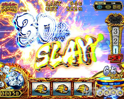 AT中のメイン要素となるのがスレイポイントによる恩恵獲得。ベル3連以降やレア小役によってスレイポイントを獲得し、100ptごとに恩恵獲得のチャンスとなる。