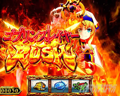 AT開始画面はATの継続率を示唆している。特に注目は紫色のオーラをまとった覚醒ゴブリンスレイヤー画面。継続率80%濃厚となるため、ロング継続に期待できる勝負所だ!!