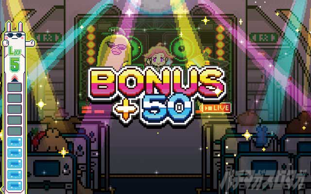 狙え演出が発生した際は、逆押しで左リールに青7を狙おう。成功すればポイント獲得となり、10ポイント獲得するごとにレベルアップ。BIG消化後はレベルに応じて、CZで使用できるチケットを獲得する。
