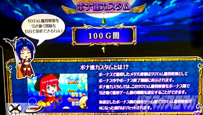 TOTAL獲得枚数を引き継ぐボーナス間ゲーム数は『ボナ連カスタム』によって自由に変更できる。