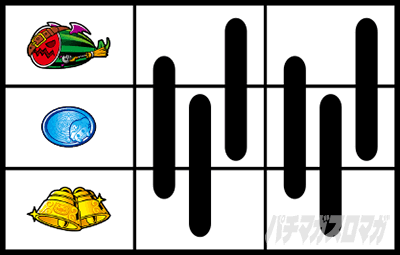 →右リール適当打ち、中リールにスイカを狙う(赤7目安)。