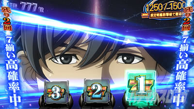| 前半パート(残り30枚まで)はチャンス目成立で7揃い高確率ゾーン突入抽選 |