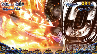 玉乗せとは後乗せのストックで、セット終了時or玉5個獲得時に「鬼武侠」が発生し、上乗せゲーム数が告知される。