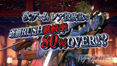 鬼斬チャージ中の小役揃いはバッサリポイントを10BP以上を獲得。レア小役であれば30BP以上!