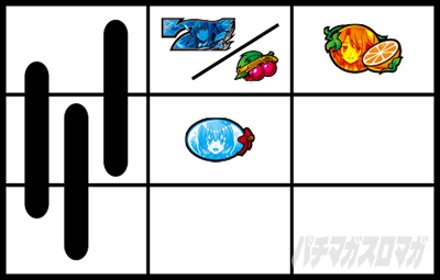 [最初に狙う絵柄]中リール上段付近に10番のオレンジ(枠下に白7)を狙う
