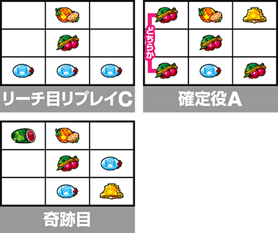 | ハズレorリーチ目リプレイCor確定役Aor奇跡目(CZ中のみ) |