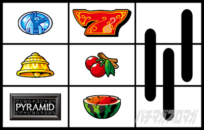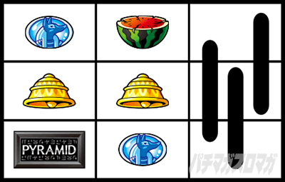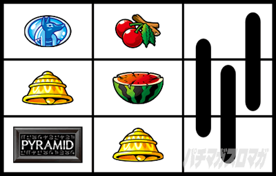 →右下がりに「ベル/ピラミッド・ピラミッド・ピラミッド」揃うと高確率がスタート。