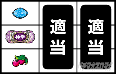 強チェリー成立時は、神拳BAR狙い時は角チェリーが停止しやすく、黒BAR狙い時は中段チェリーが停止しやすい。